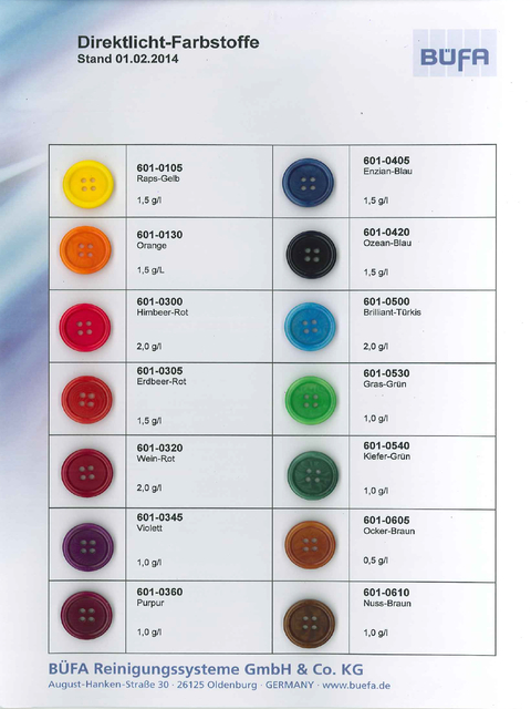 Jeder PC zeigt die Farben anders. Die hier gezeigte Farbpalette ist nur ein Anregung. Außerdem haben viele Kleidungsstücke schon eine Grundfarbe dadurch wird die Farbe auch verfälscht. Eine Hundertprozentige Gleichheit mit dem Muster kann nicht gewährleistet werden.